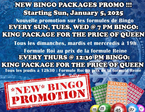As of July 2nd, we are starting our NEW special promo “Higher Payout, Same Book Price”. Please refer to the image attached above. Please note that you can always visit our website or facebook to see the program. https://overbrookbingo.ca/ https://www.facebook.com/BingoOverbrook